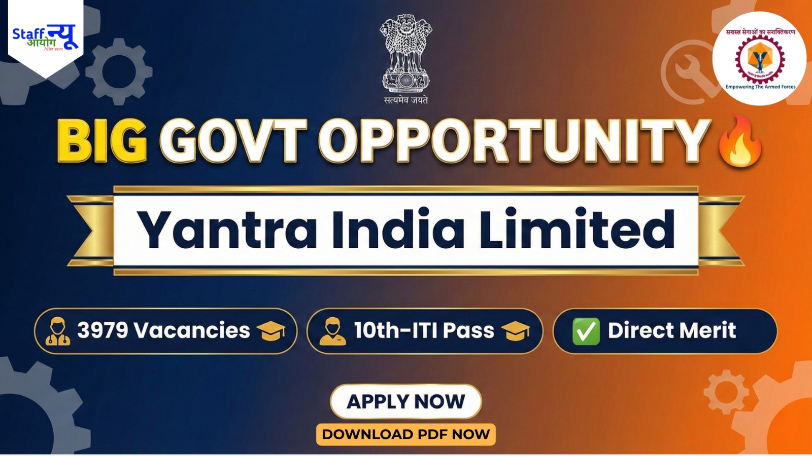 यंत्र इंडिया लिमिटेड (Yantra India Limited – YIL), जो भारत सरकार के रक्षा मंत्रालय के अधीन आने वाली एक सार्वजनिक उपक्रम कंपनी है, ने अपनी 59वीं बैच ट्रेड अपरेंटिस भर्ती 2026 के लिए आधिकारिक अधिसूचना जारी कर दी है। यह भर्ती कार्यक्रम 3979 अप्रेंटिस पदों के लिए है और इसका उद्देश्य युवा प्रतिभागियों को प्रशिक्षण […]