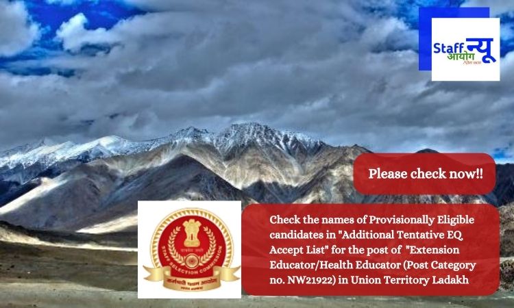The names of Provisionally Eligible candidates in the “Additional Tentative EQ Accept List” for the post of “Extension Educator/Health Educator” at the Union Territory Ladakh-Postcode No. NW21922 has been made visible by the Commission, These aspirants have passed the Computer Based Examination (CBE), and now after the scrutiny of their applications and supporting documentation’s hard copies the authority has accepted them in the “Additional Tentative EQ Accept List”.
