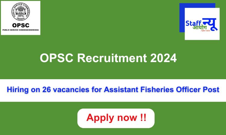 The Odisha Public Service Commission has released the notification about OPSC Assistant Fisheries Officer Recruitment 2024, there will be hiring for Assistant Fisheries Officer post against 26 vacancies. Hence interested candidates are welcome to submit their online application and application fees by 3rd May 2024, the procedure starts on 3rd April 2024. To know the urgent information such as eligibility criteria, selection procedure, pay scale, etc. read below.